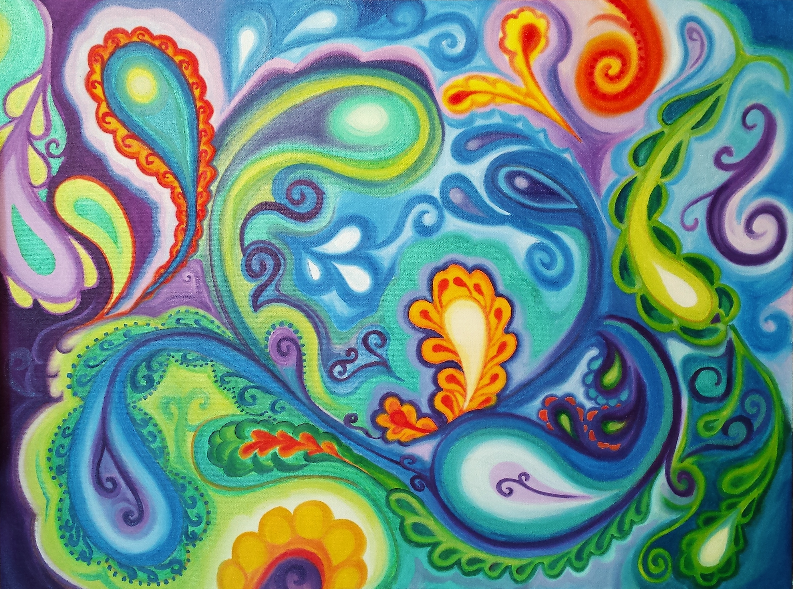 It’s very simple… and familiar. We see it every day, even though we don’t know it by name. Fractal Geometry. It comes down to this: Z=Z squared +C. What that means is simplified repetition of design, or in fractal terms: a self similar pattern. This has got to be the coolest bit of mathematics I have come across and I am on a mission to purposefully blend my art with fractals. I could probably go on about this for awhile, but really, the studio is calling and I have GOT to get in there and put this stuff on some canvas. Here’s a Wiki link if you want some general knowledge on the subject http://en.wikipedia.org/wiki/Fractal of course, there is TONS more about fractals on the internet, but Wikipedia is a good place to start.