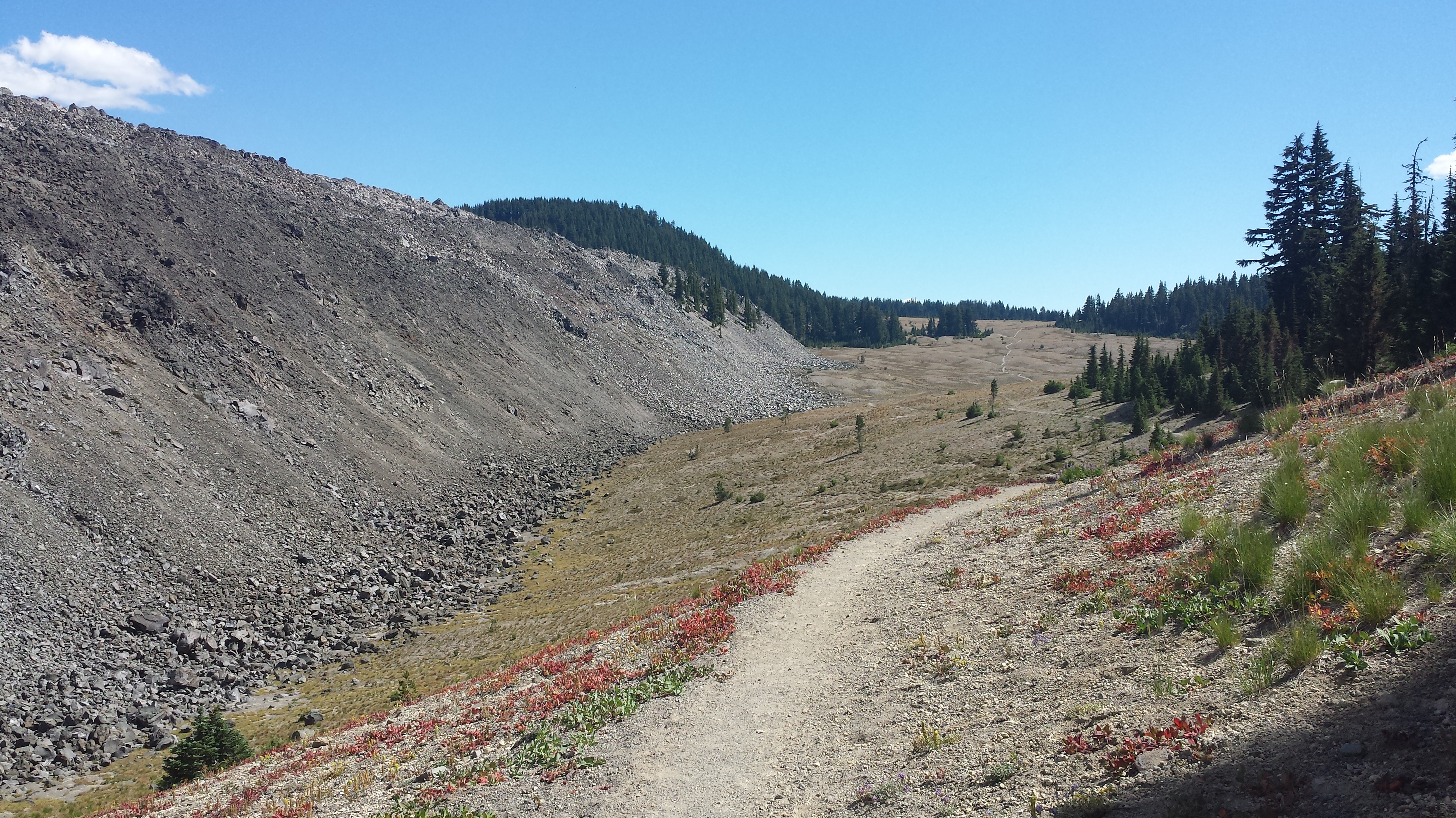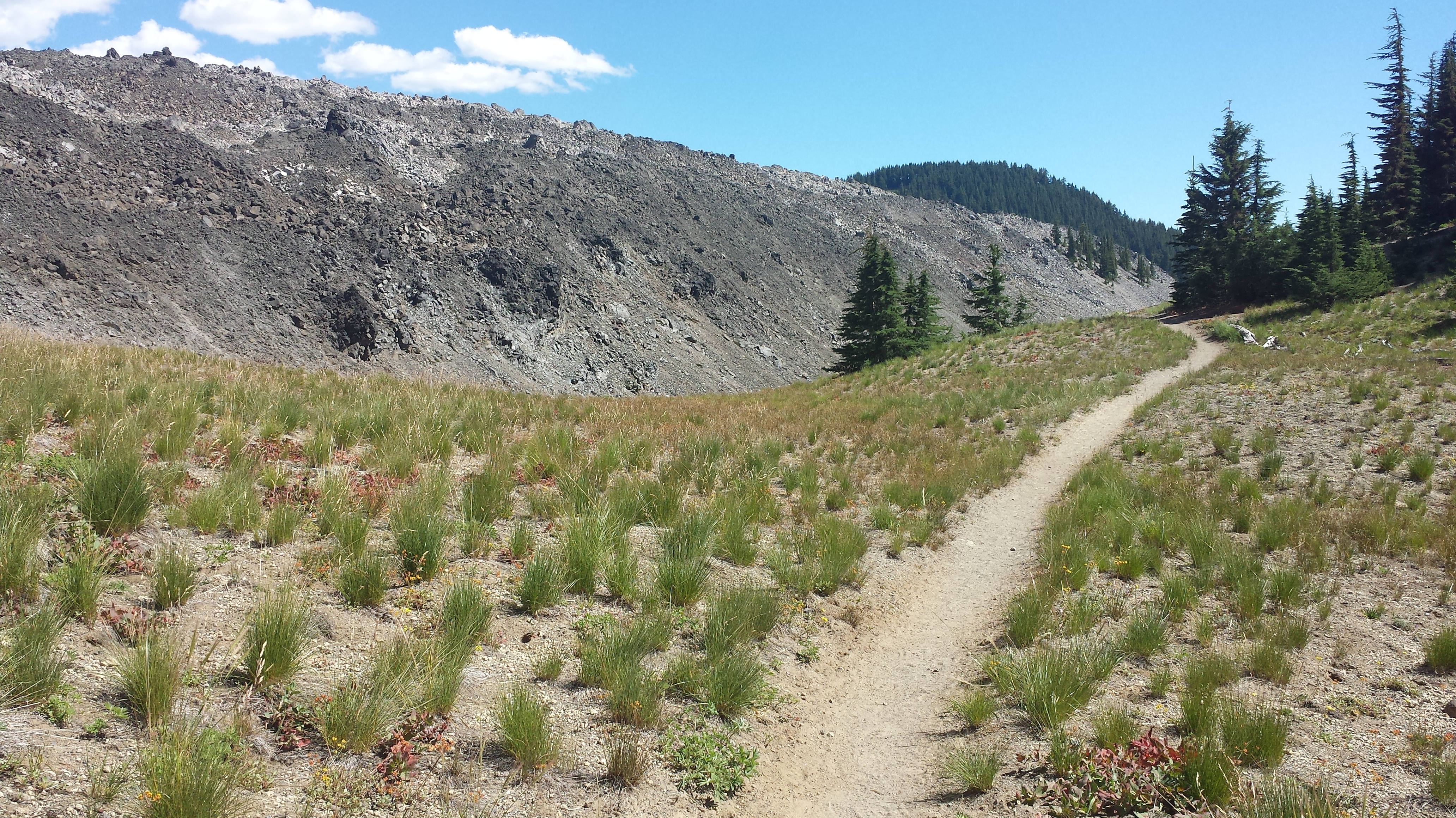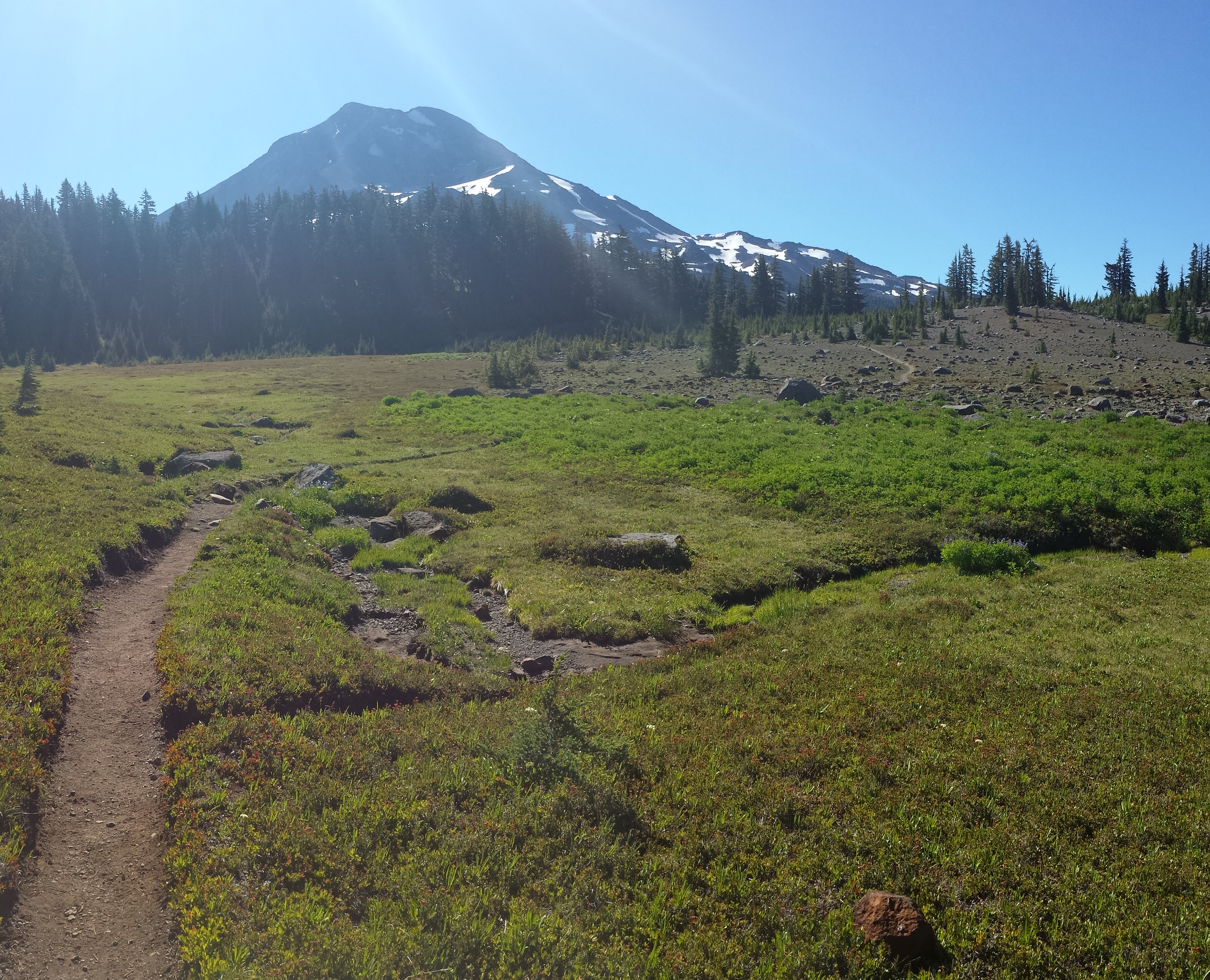 I cross paths with a hiker who has her phone pressed to her ear.  She steps aside as if we were meeting in the cereal aisle at Safeway rather than on a remote trail in the wilderness.  She’s calling Elk lake to say she forgot something and would they…. at this  point, I’ve moved out of range.  I still think it’s odd to have phones in the wilderness, it’s so incongruous.  I forget I even have a phone… I think of it as a camera, an audio player and a GPS but then I remember and stop to check my own signal.  4G!!  Hurrah!  I turn off airplane mode and the Galaxy begins to ding.  Messages are checked (there are a few well wishes from my family) and I send out a few of my own.  Now people once again know where I am and the world feels a little smaller and definitely less remote.