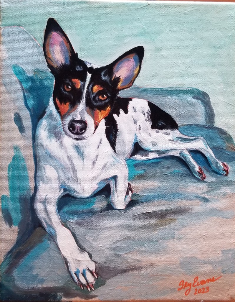 We lost our old boy a few years back, but his portrait captures his attentive regal-ness! Much loved, he introduced us to the world of Rat Terriers. I found “my breed” when Hank came into our lives. RT’s are amazing dogs!